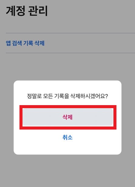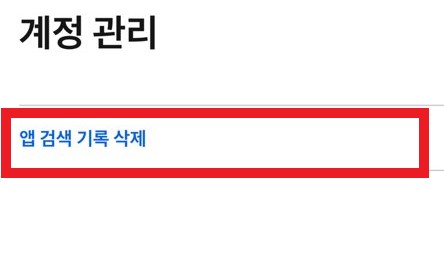 4. 계정관리에서 앱 검색 기록 삭제로 들어가기