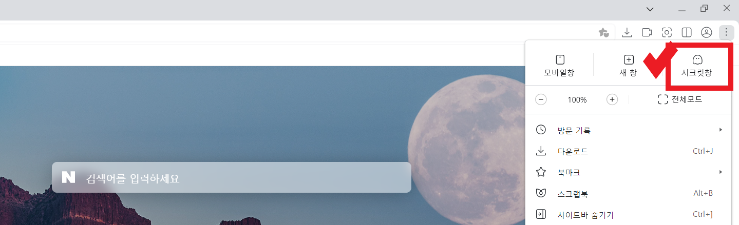 1. 네이버웨일에 접속 후 오른쪽 상단에 있는 세 개의 점을 클릭