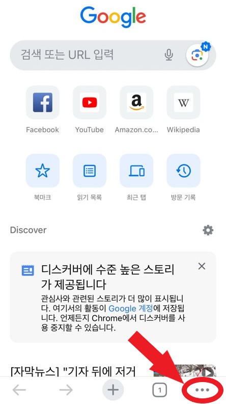 1. 크롬에 접속 후 오른쪽 상단에 있는 세 개의 점을 클릭