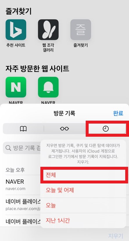 5. 정말로 모든 기록을 삭제하시겠어요? 삭제 누르기
