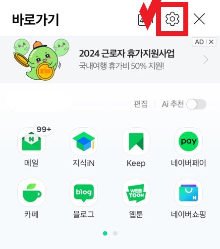 3. 오른쪽 상단에 있는 톱니바퀴 모양 (설정) 누르기
