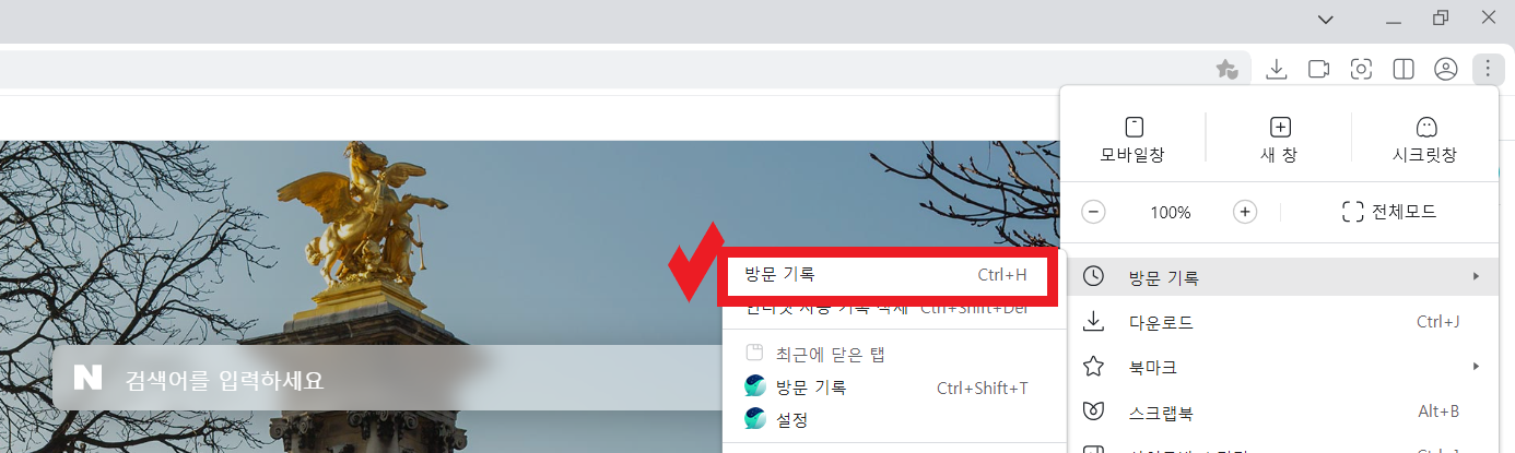 1. 네이버웨일에 접속 후 오른쪽 상단에 있는 세 개의 점 클릭